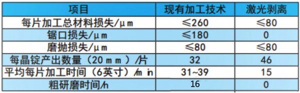 1)激光剝離技術(shù)可充分利用激光加工設(shè)備的易集成易自動(dòng)化特性,將多個(gè)晶錠的研磨、改質(zhì)切 割、剝離工序并行實(shí)施,從而提高加工效率。