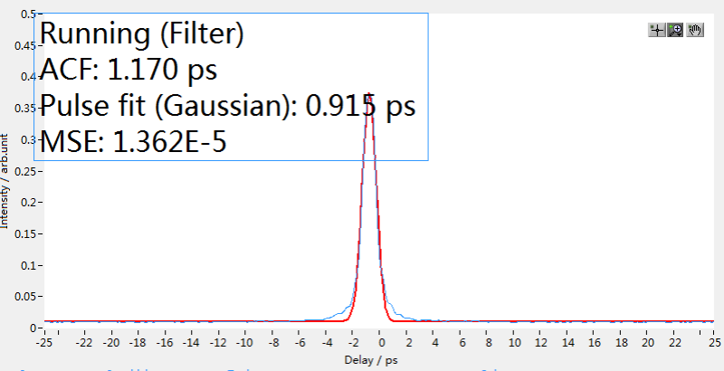 圖5. Orientation-500-IR型飛秒激光器輸出飛秒脈沖自相關(guān)曲線