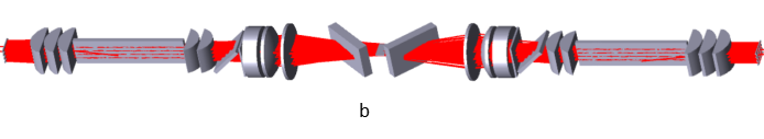 作為innoslab放大系統(tǒng)的核心光學(xué)設(shè)計(jì),信號(hào)光高斯光束整形光路、泵浦光勻化整形光路及器件的開發(fā)決定了放大系統(tǒng)最終的放大效能。奧創(chuàng)光子在光纖無源器件如光纖準(zhǔn)直器、光纖隔離器等方面積累了光纖光學(xué)工程設(shè)計(jì)經(jīng)驗(yàn)和產(chǎn)品化經(jīng)驗(yàn),另外在塊狀固體激光放大器的多級(jí)級(jí)聯(lián)、單級(jí)多通放大設(shè)計(jì)方面早已實(shí)現(xiàn)了工程化向產(chǎn)品化的過渡,因此對(duì)于高斯光束在強(qiáng)激光系統(tǒng)中的光學(xué)變換鏡組設(shè)計(jì)技術(shù)儲(chǔ)備成熟,并已移植到innoslab放大模塊的信號(hào)光光束整形系統(tǒng)中的,成就了奧創(chuàng)光子百瓦級(jí)毫焦級(jí)飛秒激光系列產(chǎn)品的主放大級(jí)。
