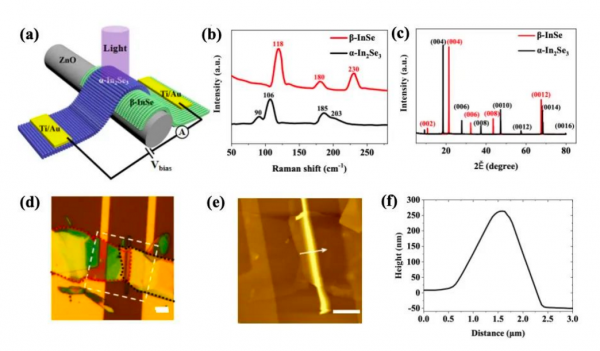 近期,深圳技術(shù)大學阮雙琛教授團隊利用不同直徑的ZnO納米線作為彎曲介質(zhì)制備出具有大應(yīng)變梯度的α-In2Se3/β-InSe光電探測異質(zhì)結(jié)。
