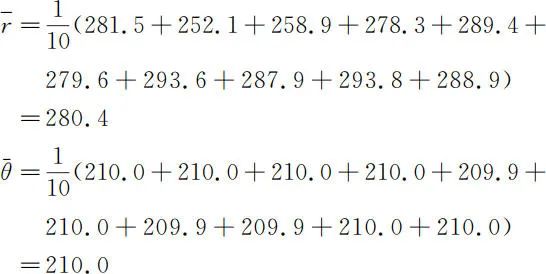 測量系統(tǒng)定位是否準確是由其對所測點 M 到激光雷達的距離即以激光雷達為圓心的半徑 r 和方位角 θ 的測量的準確性共同決定的。為了檢驗測量系統(tǒng)測距和方位角測量的準確性,在一平面上繪制極坐標,對測量系統(tǒng)分別進行測距和測角兩種情況驗證。