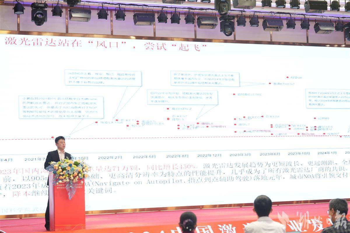 3月29日,在武漢未來科技城現(xiàn)場發(fā)布的《2024中國激光產(chǎn)業(yè)發(fā)展報告》(簡稱“《報告》”)顯示,2023年中國激光雷達上車量達71萬顆,同比增長450%,迎來行業(yè)發(fā)展的強大風口。