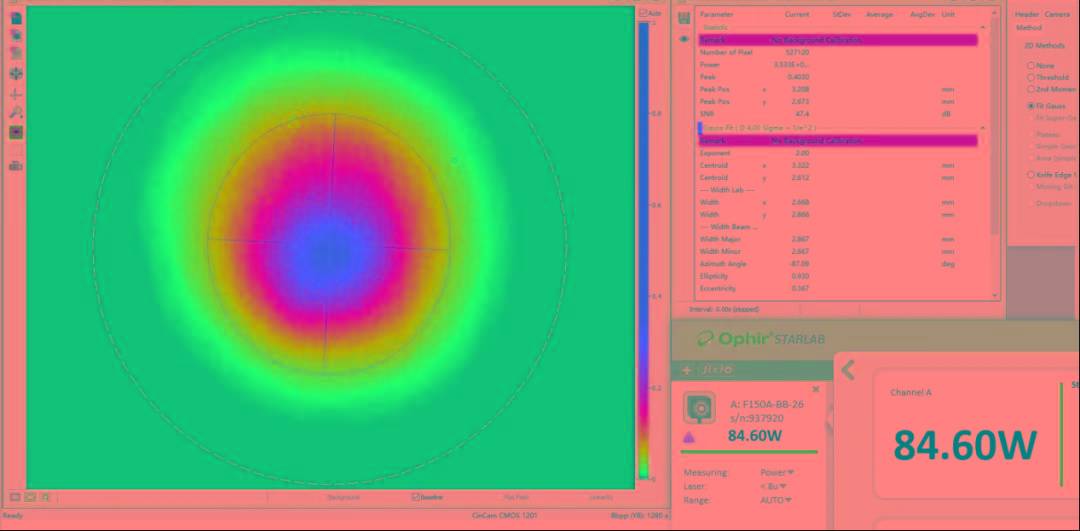 圖2. 二倍頻綠光光束質(zhì)量及光斑測量