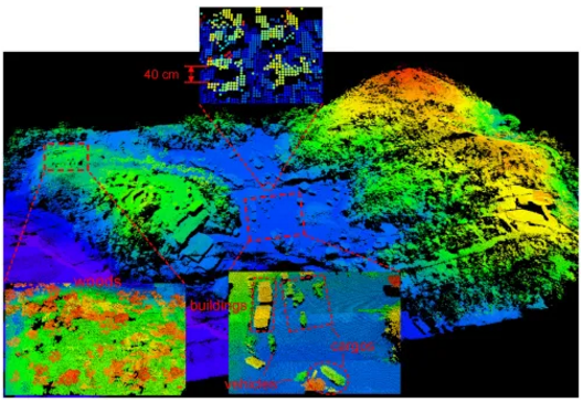 該研究團(tuán)隊成員,來自于中國科學(xué)技術(shù)大學(xué)合肥微尺度物質(zhì)科學(xué)國家研究中心的徐飛虎教授說:“在資源有限的無人機(jī)或衛(wèi)星上使用單光子激光雷達(dá)技術(shù),需要縮小整個系統(tǒng)的體積并降低能耗。我們能夠?qū)⒆钚碌募夹g(shù)發(fā)展融入到系統(tǒng)中,與其他最先進(jìn)的機(jī)載激光雷達(dá)系統(tǒng)相比,該系統(tǒng)采用了最低的激光功率和最小的光學(xué)孔徑,同時在探測距離和成像分辨率方面仍然保持良好的性能?!?/p>