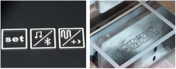 我們用GT-Pro+對觸摸按鍵進行剝漆處理,使用頻率120kHz,功率85%,脈沖寬度30ns,平均單個按鍵用時3s,剝漆效果干凈無殘留,鏡面無損傷。 3、打孔