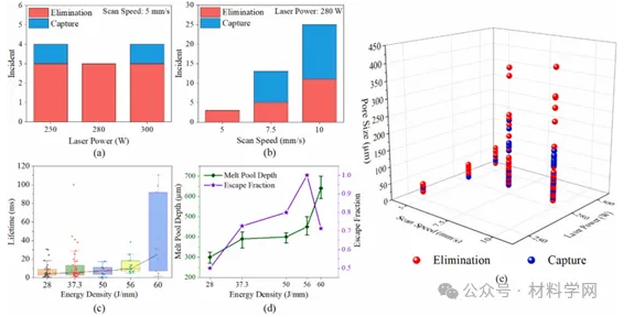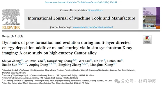 上海交通大學(xué)材料科學(xué)與工程學(xué)院董安平研究員、熊良華副教授、杜大帆副教授、何林助理教授課題組聯(lián)合北京中國科學(xué)院高能物理研究所張兵兵副研究員團(tuán)隊,在激光增材制造同步輻射原位研究領(lǐng)域取得了重要進(jìn)展,相關(guān)研究成果以“Dynamics of pore formation and evolution during multi-layer directed energy deposition additive manufacturing via in-situ synchrotron X-ray imaging: A case study on high-entropy Cantor alloy”為題發(fā)表在International Journal of Machine Tools and Manufacture上,這是國內(nèi)首篇僅利用國內(nèi)同步輻射資源發(fā)表的原位增材高水平文章。https://doi.org/10.1016/j.ijmachtools.2024.104181該工作利用同步輻射高能X射線快速成像技術(shù),對典型高熵Cantor合金在傳導(dǎo)模式下的多層定向能量沉積(DED)過程進(jìn)行了原位研究,揭示了三種新的孔洞形成機(jī)制,并驗證了三種已知的孔洞生成機(jī)制;與此同時,基于熔池尺度流場高時空分辨表征,提出了一種調(diào)控馬蘭戈尼流實(shí)現(xiàn)孔隙消除新機(jī)制。這些發(fā)現(xiàn)為高熵合金的增材制造提供了關(guān)鍵的實(shí)驗數(shù)據(jù),有助于開發(fā)精準(zhǔn)的計算模型和深入理解熔池微觀尺度下的孔隙控制策略。上海交通大學(xué)材料科學(xué)與工程學(xué)院博士生張書雅為論文第一作者,上海交通大學(xué)材料科學(xué)與工程學(xué)院孫寶德教授、董安平研究員、熊良華副教授、中國科學(xué)院高能物理研究所張兵兵副研究員為論文共同通訊作者,上海交通大學(xué)為論文第一完成單位。圖1 同步輻射原位研究激光定向能量沉積增材制造過程,從熔池尺度高精度高時空分辨揭示內(nèi)部孔洞形成及演化新機(jī)制。激光定向能量沉積(Laser Directed Energy Deposition, LDED)增材制造技術(shù)快速實(shí)現(xiàn)三維復(fù)雜幾何形狀和大尺寸組件的高質(zhì)量制造,并且能夠制備微觀結(jié)構(gòu)可調(diào)的新型合金和功能梯度合金,在航空航天、生物醫(yī)學(xué)和核能領(lǐng)域具有重要應(yīng)用。然而,與傳統(tǒng)的鑄造和焊接工藝相比,3D打印產(chǎn)品通常表現(xiàn)出更高的孔隙率和更大的孔隙尺寸,難以保障其激光打印一致性和穩(wěn)定性,嚴(yán)重影響了零件的力學(xué)和服役性能。因此,通過優(yōu)化工藝過程以減少孔隙,對于打印高熵合金等新型金屬至關(guān)重要。然而,目前對于多層DED過程在傳導(dǎo)模式下孔洞形成機(jī)制的系統(tǒng)性分析仍然有限;熔池內(nèi)部形成的孔洞如何隨熔流演變并相互作用?這些基礎(chǔ)科學(xué)問題對于減少甚至消除孔隙至關(guān)重要,而多物理模擬熔流對孔隙往往依賴高精度實(shí)驗數(shù)據(jù),當(dāng)前在多道次DED原位實(shí)驗研究尚未報道。圖2 同步輻射快速成像原位研究DED過程。(a)利用高能快速X射線成像技術(shù)實(shí)時監(jiān)測粉末輸送示意圖;(b)同步輻射線站原位表征裝置圖。針對上述問題和挑戰(zhàn),研究人員利用同步輻射高能X射線快速成像技術(shù),高時空分辨穿透高溫金屬熔體,實(shí)時觀察到高動態(tài)微尺度下熔池和氣孔的動態(tài)演變過程,原位研究了傳導(dǎo)模式下多層DED過程中多種合金體系(從鋁基、鈦基、鎳基合金到高熵合金)中的孔洞形成及演化行為,闡明了熔池內(nèi)六種孔洞生成機(jī)制和三種孔洞演化機(jī)制。圖3 同步輻射快速成像高時空分辨表征熔池形貌,定量化數(shù)據(jù)可以標(biāo)定和輸入高保真模型。研究還發(fā)現(xiàn),典型Cantor高熵合金中存在獨(dú)特的逆Marangoni對流現(xiàn)象,有助于延長孔洞的生存時間。在熔池循環(huán)區(qū),孔洞沉降至激光相互作用區(qū)相鄰位置的熔池底部,隨后被推至熔池尾部;在接觸到凝固前沿之前向上移動,并重新進(jìn)入熔池內(nèi)部循環(huán)。長壽命孔洞通常會在熔池激光相互作用區(qū)和循環(huán)區(qū)相鄰位置合并,容易向高溫區(qū)域移動,在熱毛細(xì)力和浮力主導(dǎo)下經(jīng)由熔池表面逃逸。這些發(fā)現(xiàn)對高熵合金等新合金體系DED工藝參數(shù)優(yōu)化、開發(fā)可靠的高保真計算模型以及從熔池尺度調(diào)控缺陷等具有理論指導(dǎo)意義。圖4 Cantor合金多道次熔覆后熔道形貌,可以看出激光能量密度嚴(yán)重影響多道次熔道內(nèi)部缺陷生成和熔池表面起伏以及凝固后成形質(zhì)量。圖5 同步輻射原位表征數(shù)據(jù)定量化分析熔池內(nèi)部孔洞的捕獲和消除行為上述相關(guān)研究得到了國家自然科學(xué)基金委(編號:52201017和52071205)、國家重點(diǎn)研發(fā)計劃(項目號:J2019-VI-0004-0117)、國家重大科技專項(項目號:2021YFB3703400)、上海市浦江人才計劃(22PJ1408000)以及中國科學(xué)院高能物理研究所等項目和單位的支持。