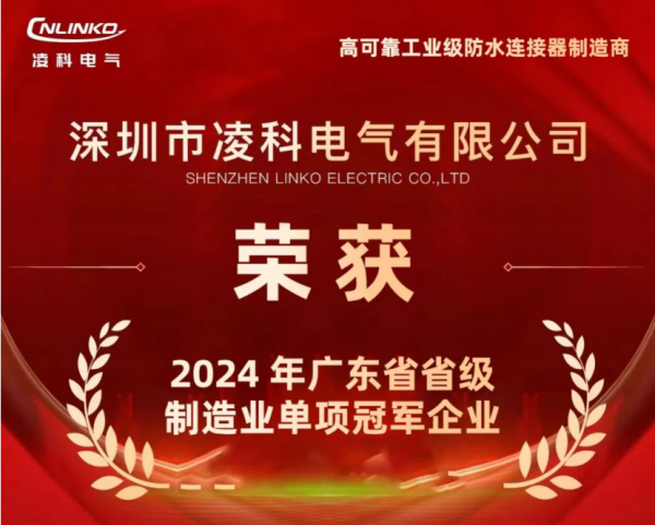近日,廣東省工業(yè)和信息化廳公布了《2024年廣東省省級(jí)制造業(yè)單項(xiàng)冠軍企業(yè)名單》,在357家榮獲此榮譽(yù)的企業(yè)中,深圳市凌科電氣有限公司因其出色的“快接式圓形工業(yè)防水連接器”而獲得“廣東省省級(jí)制造業(yè)單項(xiàng)冠軍企業(yè)”稱號(hào)。