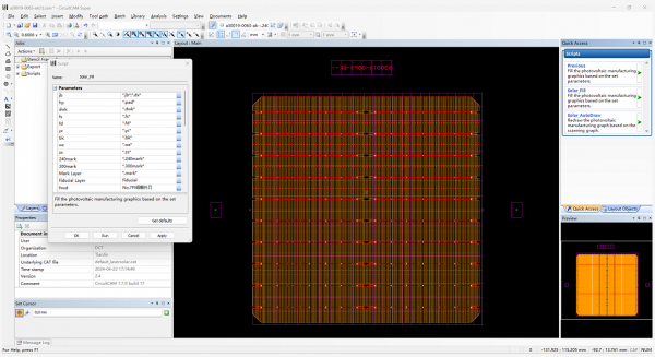 針對(duì)光伏行業(yè)的圖形處理需求,CircuitCAM8推出了LaserSolar模塊。這個(gè)模塊中,針對(duì)特定圖形的快速填充和計(jì)算、快速自動(dòng)制圖等需求,推出了快速完成光伏圖形的填充計(jì)算的Solar_Fill功能;推出了以二次元掃描圖形為基準(zhǔn),一鍵自動(dòng)繪制光伏圖形的Solar_AutoDraw功能。