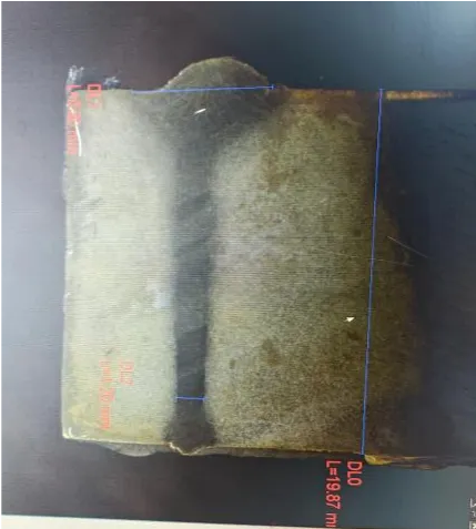 焊接激光功率為19000W,焊接速度可達(dá)1.8m/min,僅7s內(nèi)即可完成200mm長、20mm厚度的碳鋼板材的高速復(fù)合焊接,由上圖可看出,焊接焊縫效果美觀,一致性好,充分發(fā)揮了激光器高深寬比、高穩(wěn)定性的特點(diǎn),可高效達(dá)成客戶要求。