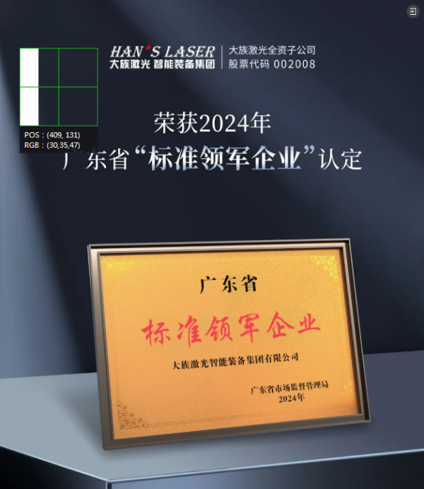 近日,大族激光旗下全資子公司大族激光智能裝備集團(tuán)有限公司(以下簡稱:智能裝備集團(tuán))榮獲“廣東省標(biāo)準(zhǔn)領(lǐng)軍企業(yè)”榮譽(yù)稱號(hào)。