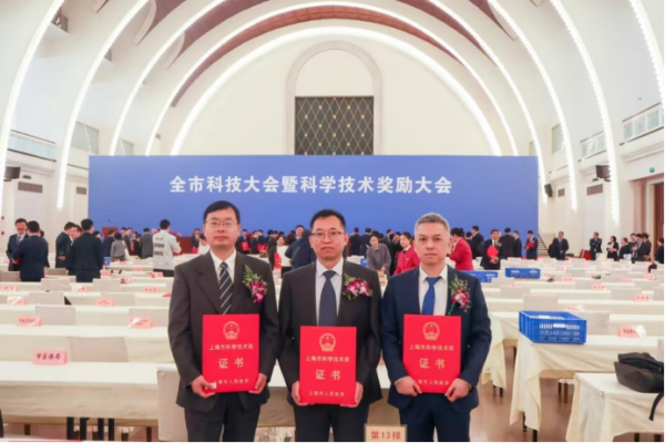 2023年度上海市科學技術獎項一等獎部分項目第一完成人合影,左起:張桂戌、武海斌、蒲戈光