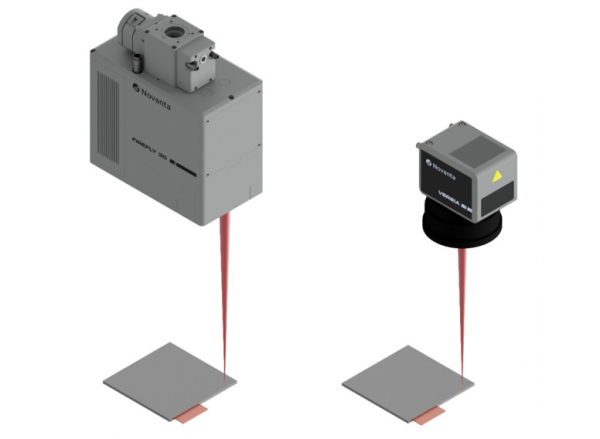 圖 5:遠(yuǎn)程激光切割配置中的 FIREFLY3D 全數(shù)字 3 軸掃描頭(左)與 VERSIA 混合型 2 軸掃描頭(右)