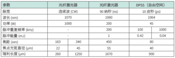切割實(shí)驗(yàn)中使用了三種不同類型的激光器:連續(xù) (CW) 光纖激光器、短脈沖 (ns) 光纖激光器和超短脈沖 (ps) 自由空間激光器。