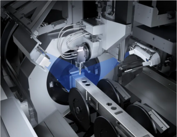 管材和型材的形狀可能與理論形狀存在偏差,即使使用機(jī)械支撐和導(dǎo)向系統(tǒng)也無(wú)法糾正這些偏差;同時(shí)材料還可能存在彎曲和扭曲,這導(dǎo)致最終切割的成品管材零件精度不穩(wěn)定,對(duì)于精度敏感的客戶(hù)和行業(yè)應(yīng)用是一個(gè)痛點(diǎn)。而通快的ScanLine功能就很好的解決了該問(wèn)題。 ScanLine是一種光學(xué)測(cè)量系統(tǒng),它使用實(shí)時(shí)補(bǔ)償來(lái)抵消由畸形管材或型材引起的軸向誤差。它使用兩個(gè)激光掃描儀,用兩個(gè)攝像頭捕捉圖像, 分析切割噴嘴位置的管材區(qū)域,快速地檢測(cè)切割點(diǎn)附近材料的位置,方向和形狀,以確保在不犧牲時(shí)間、精度或質(zhì)量的情況下快速補(bǔ)償材料公差并確定所需的輪廓偏移。將輪廓與管材中心或側(cè)面對(duì)齊,以提高部件精度并實(shí)現(xiàn)尺寸累積的成品零件, 同時(shí)操作員可在機(jī)器上輕松激活或者關(guān)閉激活。