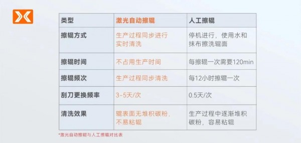 這是一個要求非常嚴格和精準的加工過程,軋輥也因之成為鋰電池生產線上不可或缺的工藝裝備之一,且輥筒表面必須達到一定的光潔度。否則,在電池極片輥壓過程中,軋輥表面輕易粘附上的材料粉末,不僅容易造成后續(xù)輥壓的電池極片質量異常,還會增加軋輥的磨損。傳統(tǒng)的清洗方法主要是采用人工擦輥的方式,這種方法存在著清潔難度大、效率低、環(huán)境污染等問題。對于當前競爭激烈的鋰電廠商而言,亟需更加高效環(huán)保的軋輥清洗技術,進而提升鋰電池生產線的整體效率和產品質量。激光清洗作為一種新興的清洗方式,為軋輥清洗帶來了革命性的變革。通過將激光打在軋輥表面,使附著在軋輥上的石墨等表面附著物吸收激光能量后氣化,從而與基體分離,達到清洗的目的。這一方式,高效、環(huán)保、無需停機、無接觸式清洗,具有人工擦輥無法比擬的優(yōu)勢。最關鍵的是,人工擦輥是隔一段時間進行清洗,軋輥表面一定會存在碳粉堆積情形,而激光擦輥是實時清洗,不會累積碳粉,實時保障設備始終以“清潔”狀態(tài)運行,為生產質量提升助力!