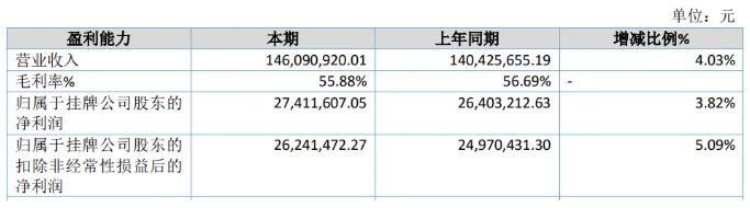 據(jù)奇致激光招股書顯示,2020 年、2021 年、2022 年及 2023 上半年,奇致激光實現(xiàn)營業(yè)收入分別約為 1.8 億元、2.4 億元、2.45 億元和 6258 萬元;歸母凈利潤分別為 2883.4 萬元、3356.8 萬元、4022.3 萬元和 1112.3 萬元,毛利率達到 55.5%、57.8%、55.6%和 59.9%,處于較高水準。奇致激光 2024 年半年度報告顯示,公司今年上半年實現(xiàn)營業(yè)收入約 1.46 億元,凈利潤約 2738 萬元,研發(fā)費用約達到 1129 萬元,占營業(yè)收入的 7.73%。