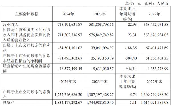 4月29日,德龍激光發(fā)布2024年度年報(bào),年報(bào)數(shù)據(jù)顯示,公司2024年度營(yíng)業(yè)收入達(dá)7.15億元,較上年同期增長(zhǎng)22.93%,然而,歸屬于上市公司股東的凈利潤(rùn)卻為-3450萬(wàn)元,同比下滑188.35%,上市后首年出現(xiàn)虧損。