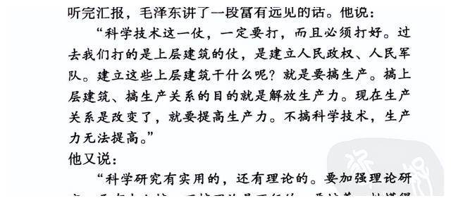 從這段話可以看出:一是毛主席非常注重科學技術(shù)!搞科學技術(shù)的目的就是提高生產(chǎn)力!