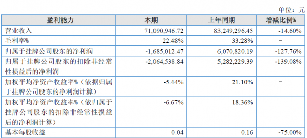湖北嘉一三維高科股份有限公司2024年度實現(xiàn)營業(yè)收入7109.09萬元,同比下降14.60%;凈虧損168.50萬元,較去年同期的607.08萬元同比下滑127.76%。