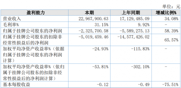 深圳市極光創(chuàng)新科技股份有限公司(極光創(chuàng)新)2024年度實現(xiàn)營業(yè)收入2296.79萬元,同比增長34.08%;歸母凈利潤虧損232.57萬元,同比減少58.39%。