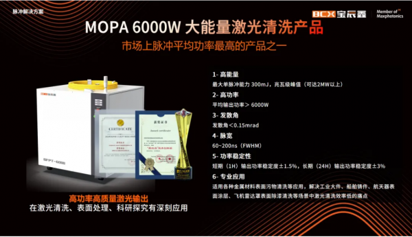 6月4日晚,第八屆"紅光獎"中國激光行業(yè)創(chuàng)新貢獻獎頒獎典禮在深圳隆重舉行。寶辰鑫MOPA 6000W大能量激光清洗解決方案憑借其卓越的技術(shù)創(chuàng)新和顯著的應(yīng)用價值,從眾多參評項目中脫穎而出,榮膺"紅光獎2025年度黑科技技術(shù)創(chuàng)新獎"。這是該技術(shù)繼獲得"中國十大光學(xué)產(chǎn)業(yè)技術(shù)—應(yīng)用獎"后,再次斬獲行業(yè)重要獎項,充分彰顯了其在大能量MOPA脈沖解決方案的領(lǐng)先地位。