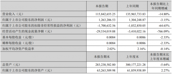8月27日晚間,金運激光(300220.SZ)發(fā)布公告,2025年半年度營業(yè)收入1.16億元,同比下降14.80%;歸屬于上市公司股東的凈利潤為126.32萬元,同比下降3.15%。
