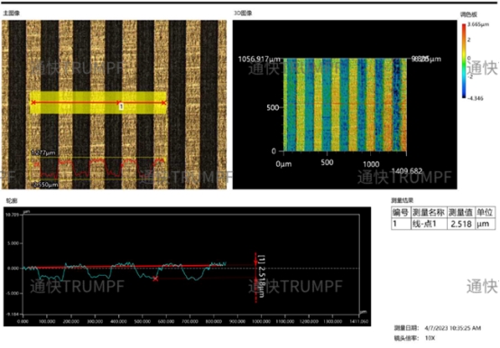 腦機(jī)接口(BCI)器件正朝著小型化、高集成化和高穩(wěn)定性方向快速發(fā)展,這對軟性電極的精密制造提出了極高要求。通快的紫外飛秒激光器(如采用355nm波長、500飛秒脈寬配置)結(jié)合高精度光學(xué)平臺,成為實(shí)現(xiàn)此類精密加工的理想工具。例如,在加工由25微米PI薄膜(上下各蒸鍍0.5微米/500nm金層)構(gòu)成的復(fù)雜結(jié)構(gòu)時(shí),通快解決方案能精準(zhǔn)實(shí)現(xiàn)50-75微米線寬電極的定深刻蝕與精密切割。加工效果邊緣無毛刺、無熱影響區(qū),且刻蝕深度均一性優(yōu)異,為下一代腦機(jī)接口器件的性能提升奠定了堅(jiān)實(shí)基礎(chǔ)。