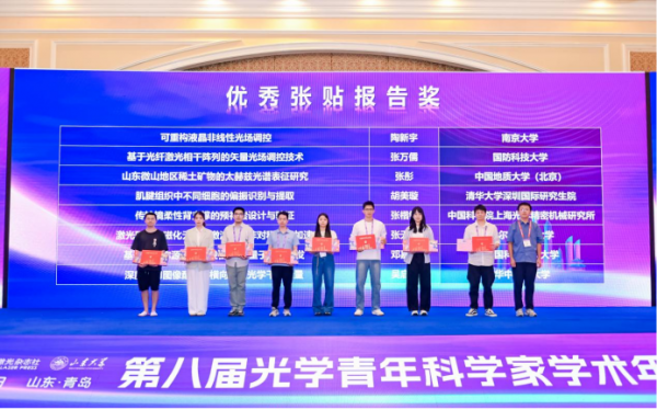 以獎項培育青年人才,是本次年會的另一大創(chuàng)新點。大會開幕式上隆重舉行的青年系列獎項——青云獎和青衿獎頒獎典禮成為全場焦點。青云獎是2025年全新設立的獎項,助力光學領域的青年才俊,成就學術夢想。經過層層評審,最終10位候選人榮膺桂冠。而與青云獎相得益彰的青衿獎,歷經3年沉淀,品牌影響力持續(xù)提升,本屆共吸引百余名學子報名,最終10名博士研究生和1名碩士研究生脫穎而出;評選線上答辯直播環(huán)節(jié)吸引了1.3萬名光學學者與愛好者在線觀看,熱度再創(chuàng)新高。頒獎典禮上,更出現(xiàn)了聚光燈下師徒同臺領獎的動人場面。青云獎和青衿獎緊密銜接,共同構建起從青年學子到青年科技工作者的成長通道,這體現(xiàn)了中國激光雜志社在服務國家人才強國戰(zhàn)略中的積極作為,彰顯出高水平學術交流平臺賦能人才培養(yǎng)的強大能力。