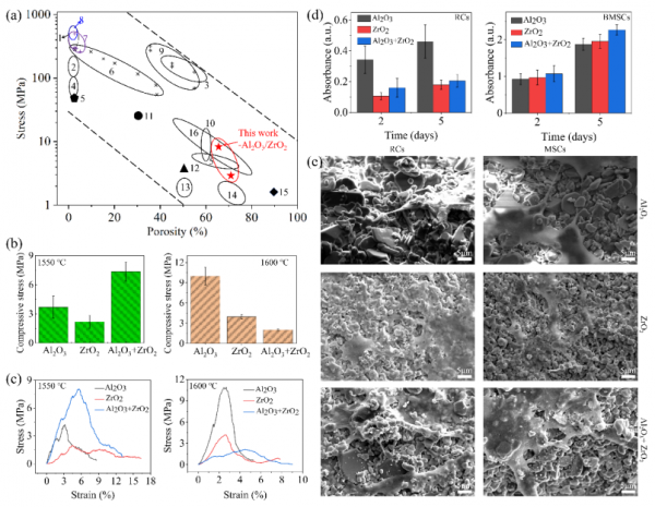性能測試結(jié)果顯示,所制備的多陶瓷復(fù)合支架在機(jī)械性能與生物相容性方面,均表現(xiàn)出優(yōu)于單組分陶瓷支架的特性。這一結(jié)果初步證實(shí),3D 打印多陶瓷支架在生物醫(yī)學(xué)領(lǐng)域(尤其是骨科植入物、齒科修復(fù)體等精準(zhǔn)醫(yī)療場景)具備良好的應(yīng)用潛力。