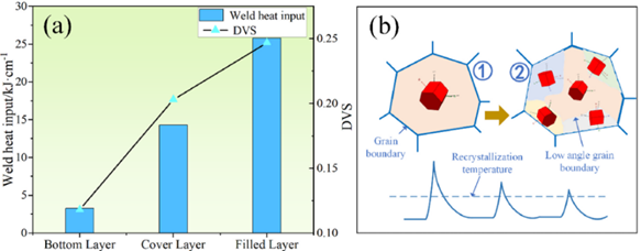 DVS與熱輸入關(guān)系:(a) 熱輸入與變體選擇之間的關(guān)系機(jī)制;(b) 在多個(gè)熱周期下變體選擇的示意圖。