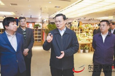 昨日,呂業(yè)升一行到道滘鎮(zhèn)調(diào)研。圖為考察搜于特集團(tuán)(記者 鄭琳東 攝)23日上午,東莞市委書記、市人大常委會主任呂業(yè)升率隊(duì)到道...