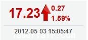 今 開: 17.05 成交量: 44736手 振 幅: 2.18% 最 高: 17.33 成交額: 7683.91萬 換手率: 1.10% 最 低: 16.96 總市值: 76.77億 市凈率: 2.91 昨 收: 16.96 流通市值: 70.23億 市盈率TTM: 32.46...