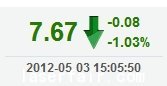 今 開: 7.76 成交量: 30836手 振 幅: 3.35% 最 高: 7.85 成交額: 2365.25萬 換手率: 1.12% 最 低: 7.59 總市值: 21.86億 市凈率: 3.50 昨 收: 7.75 流通市值: 21.08億 市盈率TTM: 34.79...