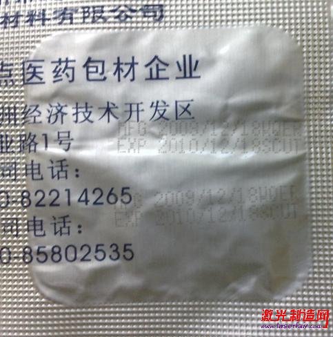 樣機能夠進行流水碼、自定義生產(chǎn)日期、自定義有效日期、自定義字符串等多種編碼的組合打碼。圖9是用該打碼機打碼后的藥品包裝,圖10是用該打碼機打碼的飲料包裝。樣機還具有紅光預覽的功能。