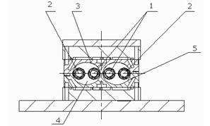 進一步的發(fā)展是把兩個并排的單燈單棒聚光腔做成一體,形成雙燈雙棒雙腔聚光腔。每個腔體由兩個相同的單橢圓聚光腔并排組成,每個單橢圓聚光腔中各放置一支晶體棒和一支泵浦燈,其結構示意如圖2。