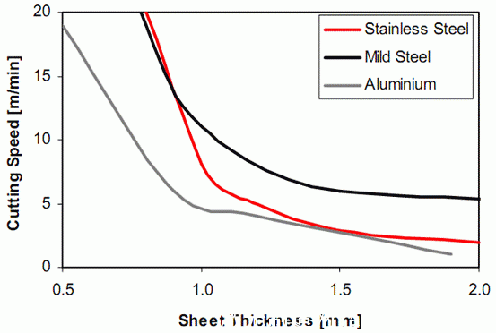 切割測試中使用的是redPOWER系列激光器,結(jié)果如圖4所示,不銹鋼和鋁材的切邊情況見圖5。這些數(shù)據(jù)證明了此系統(tǒng)能達(dá)到較高的切割速度和質(zhì)量。由于該系統(tǒng)的激光聚焦光斑極小,并結(jié)合了優(yōu)質(zhì)的光束質(zhì)量和高功率輸出,因此能得到極好的切邊質(zhì)量,幾乎沒有廢渣產(chǎn)生,熱影響區(qū)域也很小。