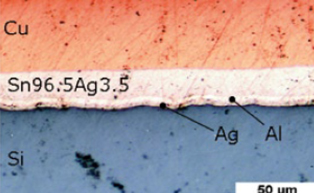 激光功率和曝光時間參數(shù)相同的前提下,ISFH得出無鉛絲(Sn96.5Ag3.5)和含鉛絲(Sn60Pb40)的可比結(jié)論。通過截面連接質(zhì)量顯示出其良好的沾粘性和接觸同質(zhì)性。