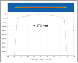 一個簡單的光斑均勻強(qiáng)度分布例子如圖6所示。這一即將投入使用的線性激光器其功率在幾百瓦范圍內(nèi),且據(jù)其進(jìn)給速度得線寬約為160 mm。