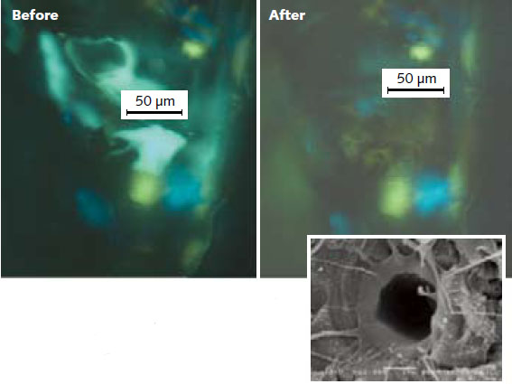 之前人們也曾經(jīng)嘗試?yán)眉す猓ɡ鏽eodymium:YAG以及erbium:YAG激光器)提取流體,但結(jié)果往往是激光與流體相互作用、而不是與流體周圍的石英相互作用,因此整個過程較難控制。