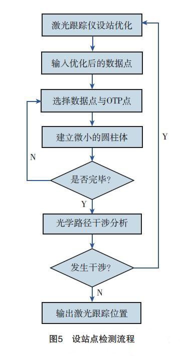 一般而言,基于定位件光學目標點數(shù)字化設計系統(tǒng)在型架裝配模型中建立OTP點以后,通過在激光跟蹤儀數(shù)據(jù)點與所有OTP點之間建立線段,通過人工觀察設站位置進行直觀的合理性判斷,顯然,這種方法很難快速得到正確結(jié)果。