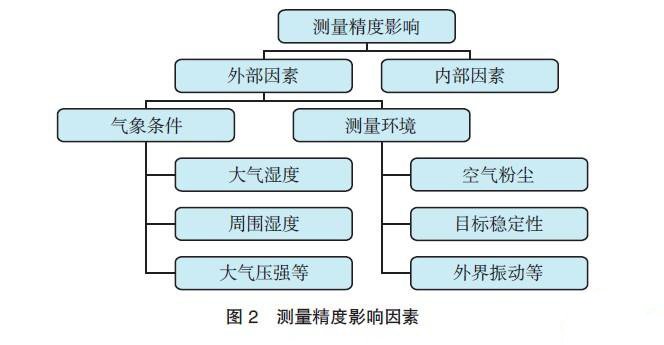 激光跟蹤儀是一種多學科綜合應用的大尺寸工業(yè)測量儀器,其測量精度主要受測角和測距的精度以及環(huán)境的影響,如圖2所示。建立相應的技術操作規(guī)范,每次使用測量之前,應對儀器進行現(xiàn)場檢查,判斷當時的測量條件,并定期實施校準。