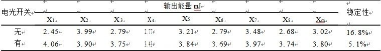 表1有無電光開關(guān)對(duì)振蕩器輸出能量的影響