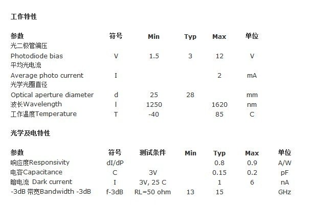 - 可探測(cè)1250 至1620納米波長(zhǎng)