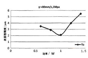 從圖8中可知,隨著功率的增加,表面粗糙度先緩慢降低,當(dāng)功率P=1kW時,表面粗糙度最小Ra=2.01μm,但隨著功率的進一步增大,粗糙度又隨之增大。粗糙度并不與功率成線性關(guān)系,而是存在一個最佳值。