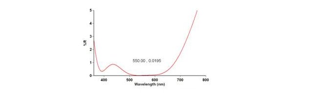 This coating provides a low level of reflectance across the wide spectrum from 400-1000nm, reflecting less than 1.0% average.