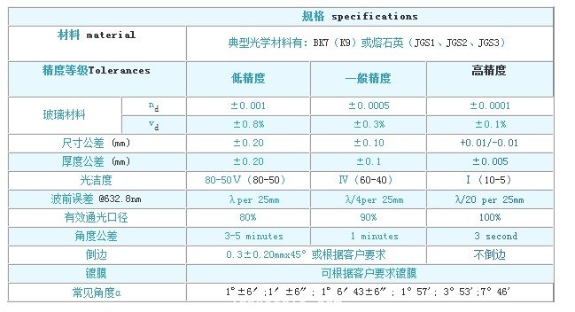 楔形鏡的序列號: J(炬科)04(楔形鏡)C(圓形) -Φ(直徑)-t(高度) J(炬科)04(楔形鏡)S(方形) -A(長度)-B(寬度)-t(高度) ※:不同材料、不同尺寸、不同鍍膜要求的光學(xué)元件可根據(jù)客戶要求加工。加工范圍是5-300MM。 |
