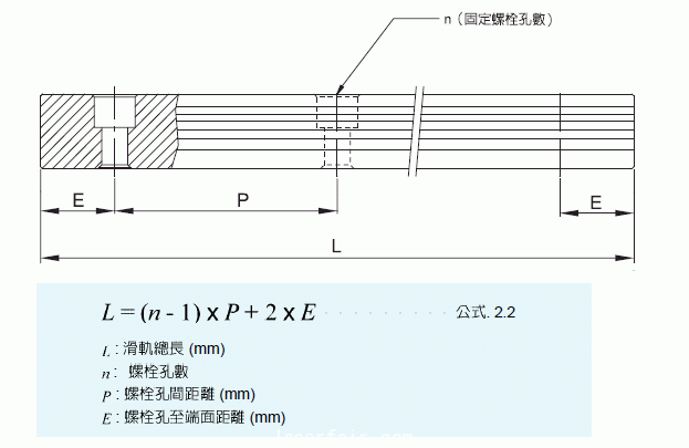 煙臺(tái)同升科技發(fā)展有限公司備有滑軌標(biāo)準(zhǔn)長(zhǎng)度庫存供應(yīng)客戶需求。假如客戶訂購非標(biāo)準(zhǔn)長(zhǎng)度滑軌時(shí),端面距離E的尺寸最好不要大於1/2P,防止因E的尺寸過大導(dǎo)致滑軌裝配后端部的不穩(wěn)定,而降低線性滑軌的精度,亦不可取用過小的E值(小於E)以避免螺栓孔破孔.#p#分頁標(biāo)題#e#