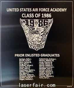 使用Synrad激光器為PECA(美國(guó)空軍預(yù)備學(xué)院)的陽極氧化鋁銘牌打標(biāo),其尺寸為8.5” x 11”,PECA是美國(guó)空軍學(xué)院的附屬機(jī)構(gòu),是專門為空軍學(xué)院培養(yǎng)專業(yè)人才的地方。