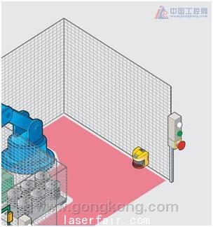 有兩個自定義的區(qū)域類型:安全區(qū)(也稱保護區(qū));警戒區(qū)(也稱預(yù)警區(qū))。如果有人進入警戒區(qū),激光掃描儀會輸出聽覺或視覺的報警信號。如果有人在安全區(qū)進行違規(guī)操作,則掃描儀會自動開啟安全保護、緊急停機程序。