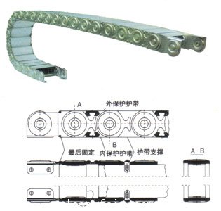 外形美觀. 護(hù)板結(jié)構(gòu)裝置已經(jīng)接受了15年以上的考驗(yàn).極穩(wěn)定,堅(jiān)固的電纜保護(hù),可達(dá)1000mm寬,在任意一個(gè)部位都能打開拖鏈。